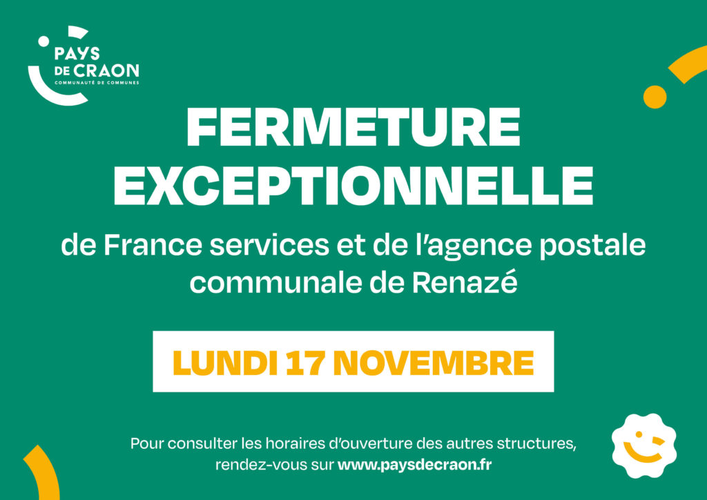 Fermetures exceptionnelles France services Craon et accueil du CIAS et France services Renazé et Agence postale communale Renazé