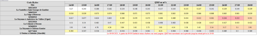 Je vous prie de trouver ci-après la situation de l’étiage au 30 septembre 2025 pour le département de la Mayenne.